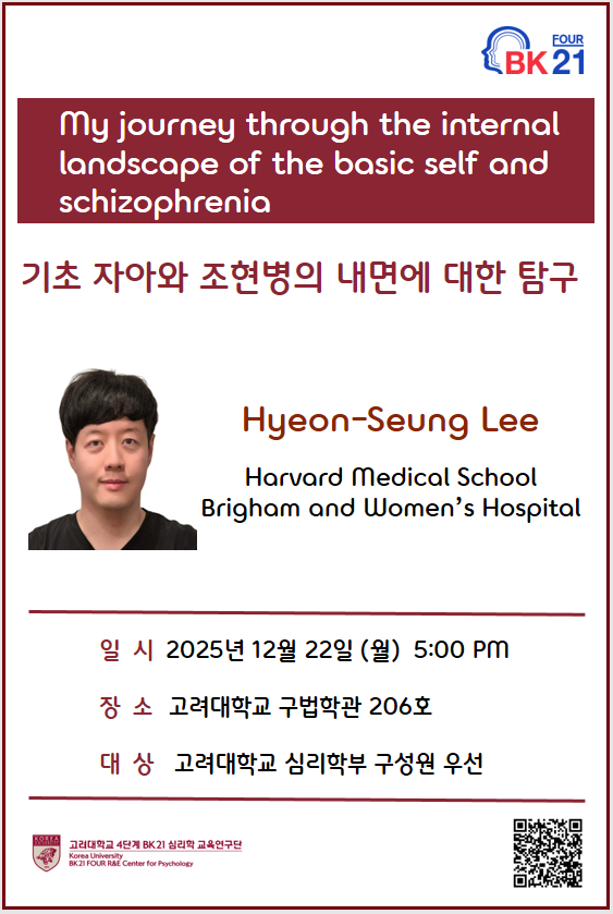 고려대학교 4단계 BK21 심리학교육연구단에서는 저명한 연구자를 초빙하여 아래와 같이 강연을 개최합니다.